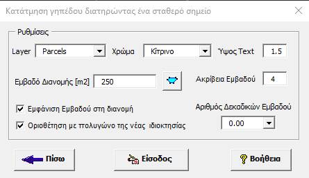 Τον αριθμό δεκαδικών του εμβαδού που θα εμφανιστεί στο σχέδιο.
