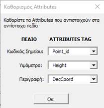 δηλώνουμε σε ποιο Attribute Tag περιέχεται ο κωδικός ή το υψόμετρο ή η