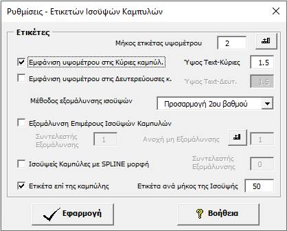 εάν θα εμφανίζονται οι ετικέτες στις κύριες καμπύλες, καθώς και το ύψος αυτών