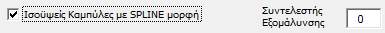 Εάν θέλουμε μπορούμε να σχεδιάσουμε τις ισοϋψείς καμπύλες σε SPLINE μορφή, επιλέγοντας την αντίστοιχη επιλογή, θέτοντας τον συντελεστή εξομάλυνσης. Δίνοντας την τιμή 0 (μηδέν), η καμπύλη θα διέρχεται υποχρεωτικά από τα σημεία προσαρμογής.