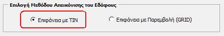 ΤΙΝ Professional: Δημιουργία επιφάνειας μορφής ΤΙΝ με εισαγωγή Breaklines, Boundary (οριογραμμές) και κενές "νησίδες" στην επιφάνεια. Ο τρόπος δημιουργίας της επιφάνειας με την εφαρμογή TIN Professional περιγράφεται αναλυτικά στην παράγραφο Δημιουργία επιφάνειας ΤΙΝ με την εφαρμογή ΤΙΝ Professional .