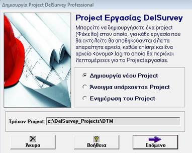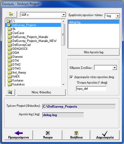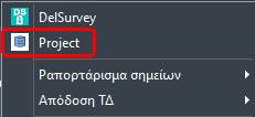 Από το Menu του DelSurveyCad, μπορούμε να ορίσουμε project εργασίας επιλέγοντας Project DelSurvey (σε όλες τις εκδόσεις).