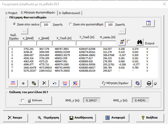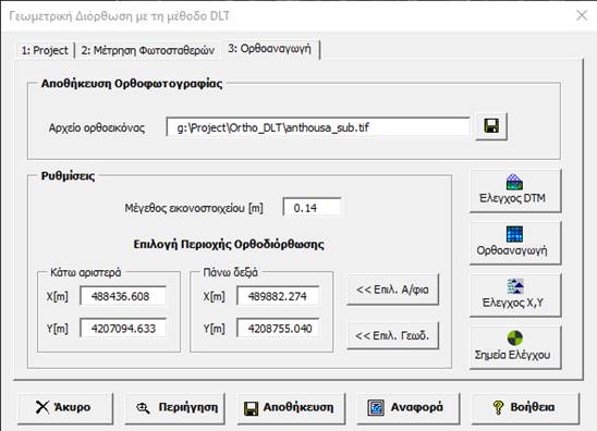 Για την κατασκευή όρθοφωτογραφίας με τη μέθοδο DLT εφαρμόζουμε τα παρακάτω βήματα: