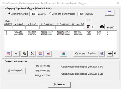 σημεία επί της ορθοφωτογραφίας για να δούμε την οριζοντιογραφική ακρίβεια της ορθοφωτογραφίας.