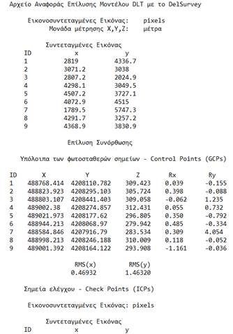 : Εισαγωγή σημείων εικόνας και φωτοσταθερών (Format εισόδου: Κωδ. Σημείου, x_pixel, y_pixel, Χφωτοσταθ, Υφωτοσταθ , Ηψόμετρο)
