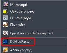 Βοήθεια για DelSurveyCadΗ εφαρμογή Del GeoRaster είναι εφαρμογή που εργάζεται ως Add-in στα σχεδιαστικά λογισμικά Autocad, ZWCAD, BricsCAD και GstarCAD και διαχειρίζεται Raster δεδομένα.