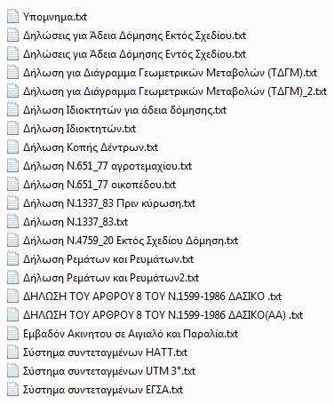 Σημείωση!! Μπορούμε να τροποποιήσουμε τις υπάρχοντες δηλώσεις, δηλαδή όπου λέει ότι «….δηλώνω ότι δεν αποτελεί Δασική Περιοχή», μπορούμε να το αλλάξουμε για Αρχαιολογικού ενδιαφέροντος, Αιγιαλού, Εκκλησιαστικής ή Μοναστηριακής περιουσίας κ.α.