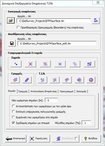 Βοήθεια για DelSurveyCadΜε την εφαρμογή «Δυναμική επεξεργασία επιφάνειας ΤΙΝ» μπορούμε να επεξεργαστούμε