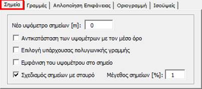 Για κάθε κατηγορία γεωμορφολογικών σημείων υπάρχουν αντίστοιχες καρτέλες με τις ρυθμίσεις που μπορούμε να θέσουμε.