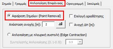 Πρώτη μέθοδος είναι η αφαίρεση σημείων, όπου από τις ρυθμίσεις Απλοποίηση Επιφανείας επιλέγουμε την αντίστοιχη μέθοδο:
