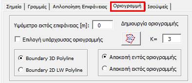 Οριοθέτηση επιφάνειας. Παρακάτω αναλύεται ο τρόπος με τον οποίο οροθετείται μία επιφάνεια και τις ρυθμίσεις που μπορούμε να θέσουμε. |