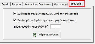 τις αντίστοιχες επιλογές σχεδιάζονται οι ισοϋψείς καμπύλες, με πράσινο χρώμα της αρχικής επιφάνειας