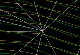 Ανταλλαγή πλευράς T.I.N. Επιλέγουμε την πλευρά που θέλουμε να ανταλλάξουμε δίνοντας τα δύο σημεία της πλευράς (αρχή, τέλος). Το παραπάνω χρησιμοποιείται ιδιαίτερα σε ΤΙΝ που έχουν σχηματιστεί μετά από τη χρήση Breaklines ή στα όρια της επιφάνειας μετά την οριοθέτησή της. Η εφαρμογή εξομαλύνει το σχήμα και τη μορφή των ισοϋψών καμπυλών. |