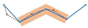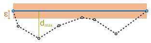 Στο παρακάτω σχήμα φαίνεται η λειτουργία και οι παράμετροι του αλγορίθμου Ramer–Douglas–Peucker για την αφαίρεση κόμβων από polyline, χωρίς να μεταβληθεί η γεωμετρία και το σχήμα της πολυγωνικής γραμμής.