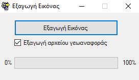 Πατάμε «Εξαγωγή Εικόνας» και καθορίζουμε το όνομα, την διαδρομή και τον τύπο της εικόνας που θέλουμε να αποθηκευτεί. Εάν θέλουμε να αποθηκευτεί και το αρχείο της γεωαναφοράς επιλέγουμε την αντίστοιχη επιλογή.