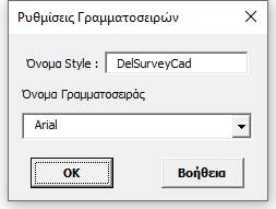 Το παραπάνω στυλ θα εφαρμοστεί σε όλα τα στοιχεία ΤΕΧΤ που θα δημιουργηθούν από τις εφαρμογές του DelSurveyCad.
