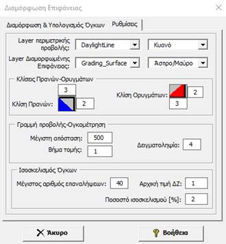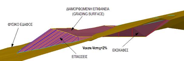 επιφάνειας σχεδιασμού με το φυσικό έδαφος, λαμβάνοντας υπόψη τις κλίσεις των