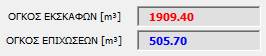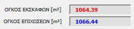 όπου εμφανίζονται οι συνολικοί όγκοι των εκσκαφών και των επιχώσεων