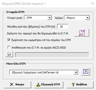 Εάν επιλέξουμε «Εξαγωγή Υψόμετρων από DelTerrain v6 ή v7» ή «Εξαγωγή Υψόμετρων από