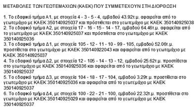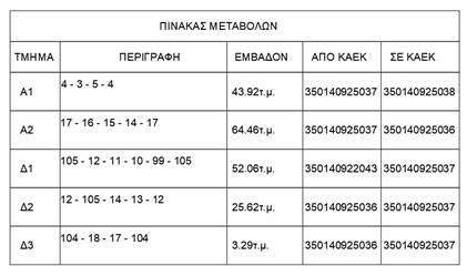 δήλωση με τις μεταβολές των γεωτεμαχίων που εμπλέκονται στη γεωμετρική μεταβολή