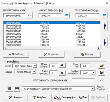 με τα αρχικά και τελικά εμβαδά των εμπλεκομένων ΚΑΕΚ, επιλέγουμε από το