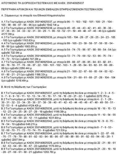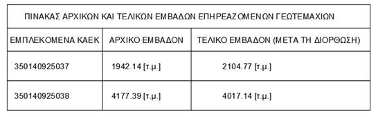 τελικά εμβαδά των γεωτεμαχίων, όπως διαμορφώνεται μετά τη γεωμετρική μεταβολή.