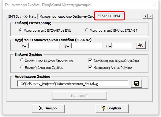Επιλέγουμε το είδος της μετατροπής, από ΕΓΣΑ 87 σε ENU ή από ENU σε ΕΓΣΑ 87.