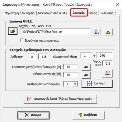 την απόσταση μεταξύ των διατομών και το πλάτος αυτών. Πατώντας το εργαλείο