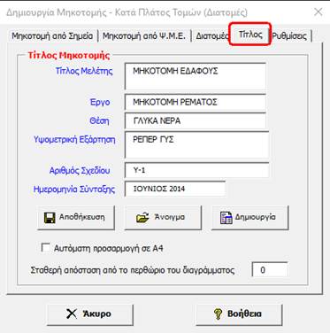 Δίνουμε τα στοιχεία που θέλουμε να εισαχθούν στο υπόμνημα λεπτομερειών της μηκοτομής τα οποία μπορούμε να εισάγουμε στο σχέδιο δίνοντας την κάτω αριστερή και την πάνω δεξιά γωνία, πατώντας Δημιουργία.