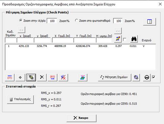 τα σημεία ελέγχου πατάμε «Υπολογισμός» όπου προσδιορίζεται ο οριζοντιογραφική ακρίβεια. Από το