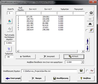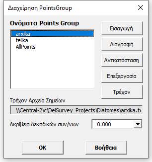 Επεξεργασία: Μπορούμε να επεξεργαστούμε τα σημεία του PointGroup, όπως φαίνεται στην παρακάτω φόρμα: