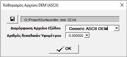 Επιλέγουμε το format εξόδου και πατάμε ΟΚ. Το format εξόδου μπορεί να είναι, είτε σε αρχείο σημείων με μορφή Χ,Υ,Ζ με τη σειρά που επιθυμούμε ή σε μορφή Generic ASCII.
