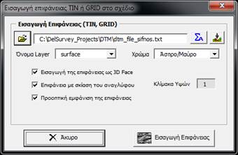 επιφάνειας. Υπάρχει η δυνατότητα να εισάγουμε αρχείο επιφάνειας σε μορφή ASCII