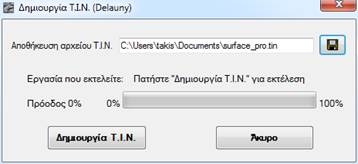 Πατάμε Επόμενο για την δημιουργία επιφάνειας, δίνοντας το αρχείο επιφανείας που θα δημιουργηθεί και πατάμε Δημιουργία ΤΙΝ.