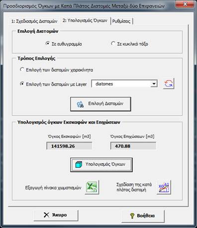 Για τον υπολογισμό των όγκων εκσκαφών και επιχώσεων πατάμε ![]()