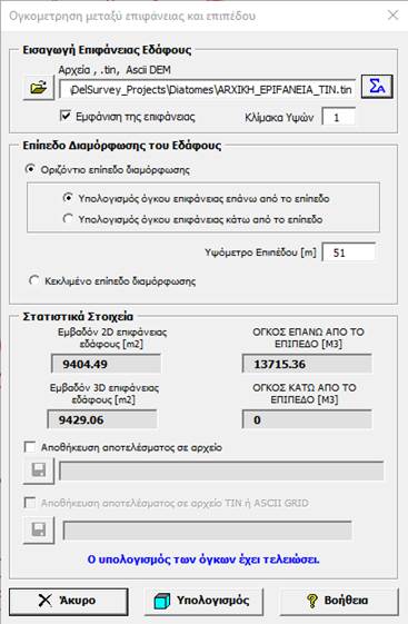 τον υπολογισμό του όγκου από κεκλιμένο επίπεδο, δίνεται η επιλογή