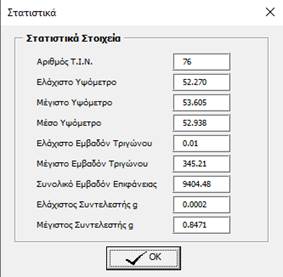 έχουμε τα στατιστικά στοιχεία της επιφάνειας, όπου και οπτικοποιούμε