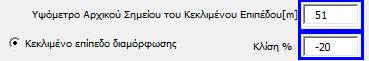 του κεκλιμένου επιπέδου, καθώς και την κλίση του (%), στα αντίστοιχα πεδία της