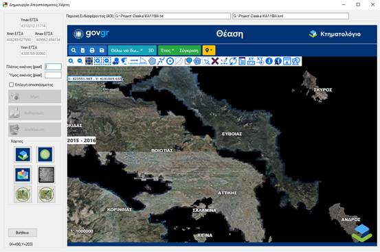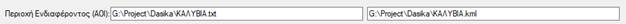 Παράδειγμα δίνοντας το όνομα ΚΑΛΥΒΙΑ και πατώντας Οκ, αυτόματα δημιουργούνται στο Project Εργασίας, δύο αρχεία με ονόματα: ΚΑΛΥΒΙΑ.txt και ΚΑΛΥΒΙΑ.kml και εμφανίζεται ταυτόχρονα η παρακάτω εφαρμογή: