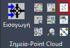 Βοήθεια για DelSurveyCadΓια τη σχεδιαστική απόδοση του point cloud μπορούμε να εισάγουμε τα σημεία στο σχέδιο ως οντότητες points. Εξαιτίας του γεγονότος ότι τα σημεία είναι υπερβολικά στον αριθμό (μερικά εκατομμύρια) για τη διαχείριση από το σχέδιο, προτείνεται αρχικά να δημιουργείται μία οριζόντια τομή (για απόδοση κατόψεων), πολύ μικρού πάχους, στο point cloud, της τάξης των 5cm με 10cm και κατόπιν κατά την εξαγωγή με τα εργαλεία του DelSurveyCalc να γίνεται αραίωση στο επίπεδο του 1mm και να αποθηκεύονται σε μορφή CSV. Τα παραπάνω επιτυγχάνονται με το εργαλείο 3D Πλαίσιο του Delsurvey Calc.