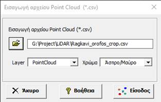 και καθορίζουμε το Layer και το χρώμα του Layer που θα εισαχθούν τα σημεία. Η εφαρμογή εισάγει