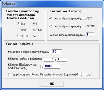 Καθορίζουμε τα επίπεδα εμπιστοσύνης για τον σχεδιασμό του κυκλικού σφάλματος και τον στατιστικό έλεγχο του δικτύου.