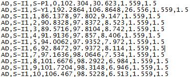 AD,Από Σημείο, Προς Σημείο, Οριζόντια γωνία (ανηγμένη), Κατακόρυφη γωνία, Κεκλιμένο μήκος Ύψος οργάνου, Ύψος Στόχου