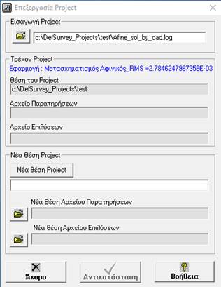 Το παραπάνω εργαλείο το χρησιμοποιούμε για να δηλώσουμε την νέα θέση του Project εάν αυτό έχει μεταφερθεί π.χ. σε άλλο φάκελο ή υπολογιστή. Ορίζουμε τη νέα θέση του Project από την επιλογή «Νέα θέση Project» , όπου εμφανίζεται το ακόλουθο παράθυρο: