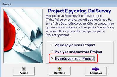 Η επεξεργασία του project μπορεί να γίνει επίσης πατώντας «Project» από το κεντρικό menu του προγράμματος και επιλέγοντας «Επεξεργασία Project», είτε από το menu «Εργαλεία-Ρυθμίσεις-> «Ενημέρωση Project»