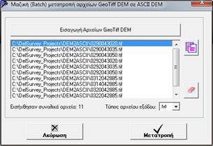 DEM». Πατώντας «Μετατροπή» γίνεται μαζικά η μετατροπή των αρχείων.