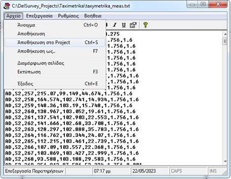 Βοήθεια για το DelSurveyΟ επεξεργαστής αρχείων παρατηρήσεων είναι ένας mini editor για επεξεργασία αρχείων txt. Η εκκίνησή του γίνεται από το μενού του DelSurvey.