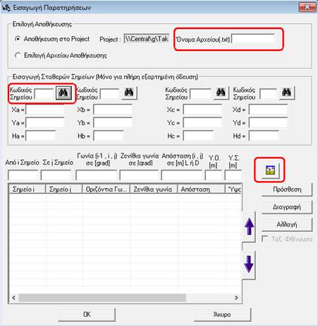 τα σταθερά σημεία από τη βάση των σταθερών ή επιλυμένων σημείων. Πατώντας