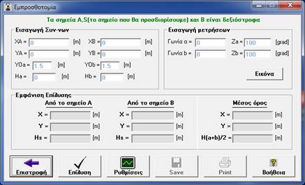 Πατάμε Επίλυση και βλέπουμε τις συν-νες του σημείου (S Άγνωστο σημείο) το οποίο έχουν προσδιορισθεί από το σημείο Α και το σημείο Β καθώς και τον μέσο όρο αυτών . Εμείς λαμβάνουμε ως ορθή τιμή αυτή την τιμή του μέσου όρου.