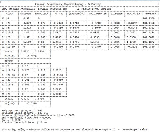 Βοήθεια για το DelSurveyΤο πρόγραμμα έχει τη δυνατότητα να επιλύει χωροσταθμικές οδεύσεις για τον προσδιορισμό υψομετρικών διαφορών. Έχει τη δυνατότητα επίλυσης κλειστής και ανοιχτής χωροσταθμικής όδευσης, καθώς επίσης να επιλύει χωροσταθμική όδευση με ενδιάμεσα σημεία (π.χ. προσδιορισμός μηκοτομής κατά μήκος του άξονα δρόμου με ταυτόχρονες παρατηρήσεις διατομών).